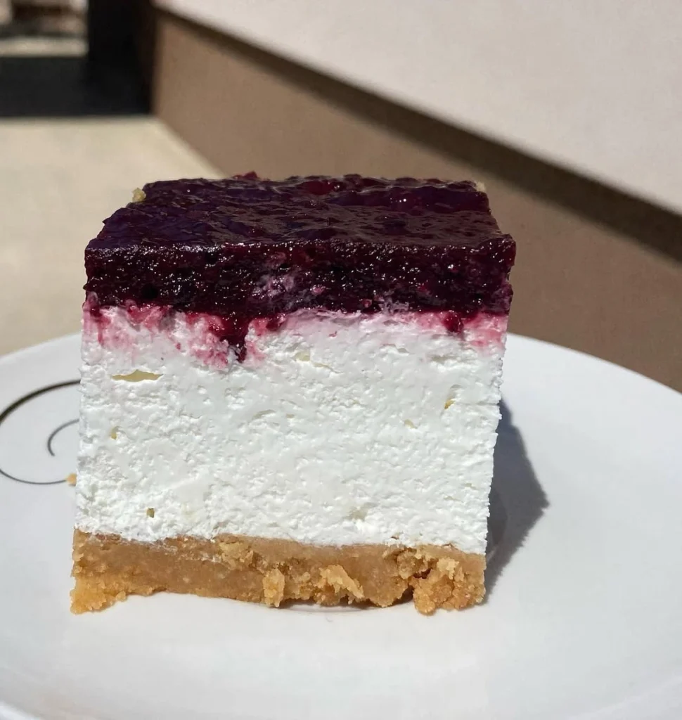 Cheesecake s kupinama posebno je popularan jer kombinira klasiku i sezonsko voće – sličan je poznatom New York cheesecakeu, ali s dodatkom domaćeg karaktera i prirodne voćne arome. Kupine daju blagu kiselkastu notu koja savršeno balansira slatkoću kreme, čineći svaki zalogaj laganim i osvježavajućim.