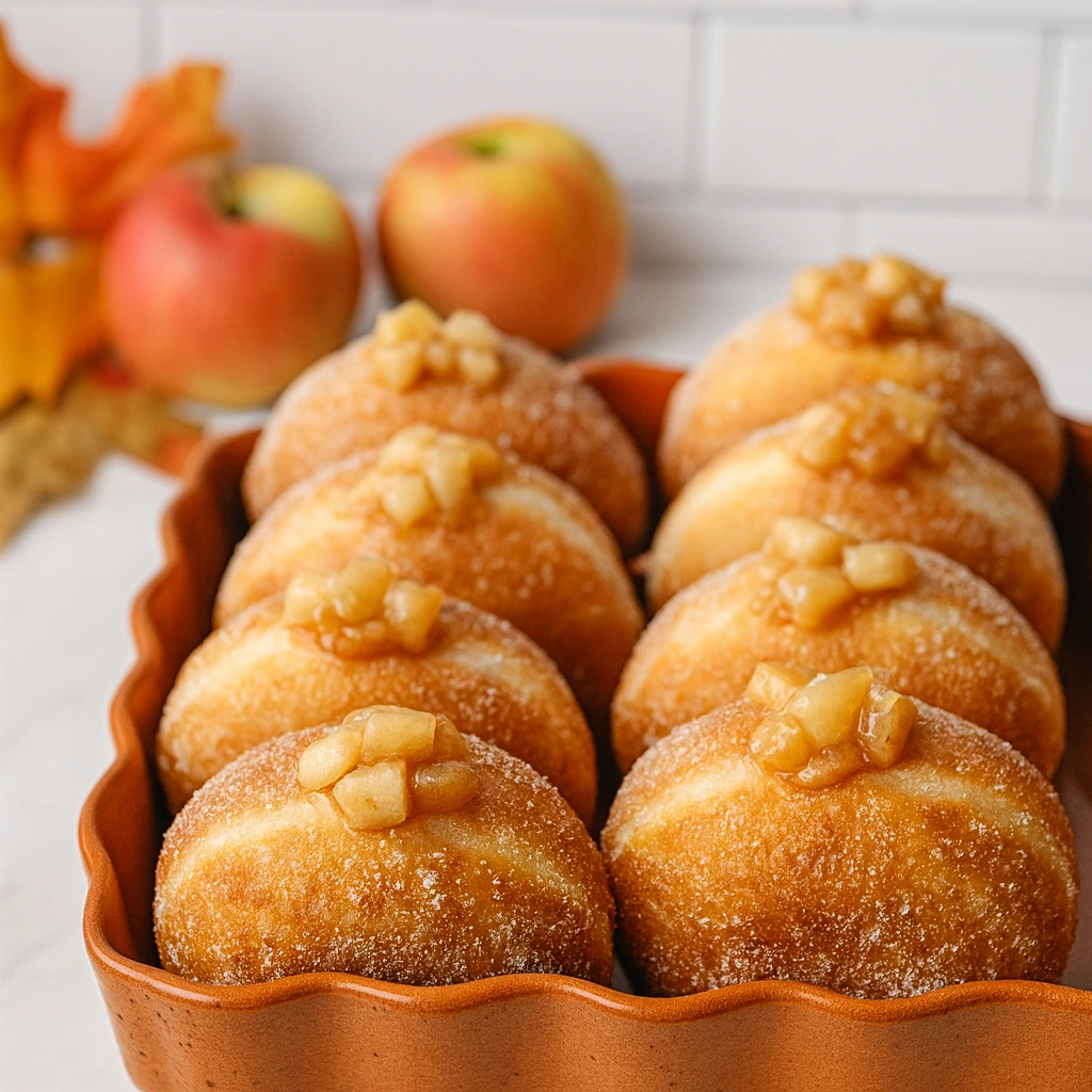 Ove krafne s jabukama idealne su za jesenske i zimske dane, kad su jabuke najsočnije, a kuća zamiriše na cimet i toplinu domaće kuhinje. Svaka krafna je lagano uvaljana u mješavinu šećera i cimeta, što daje prepoznatljiv miris i okus koji osvaja na prvi zalogaj. Nadjev je kremast, lagano karameliziran i taman toliko sladak da ne preuzima okus tijesta.